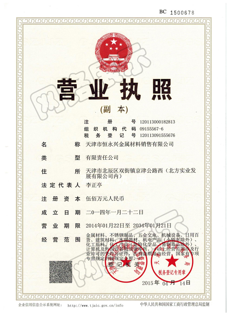 | 歡迎您光臨天津市恒永興金屬材料銷(xiāo)售有限公司網(wǎng)站! | ·設為首頁(yè) ·加入收藏 |
